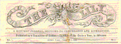 The first issues were priced at 50 cents a year and published in Seneca Falls, New York, as a monthly, eight-page, three-column publication.[1][3] The inaugural issue, published on January 1, 1849, set forth the philosophy and initial goals: "It is WOMAN that speaks through the LILY. It is upon an important subject, too, that she comes before the public to be heard. Intemperance is the great foe to her peace and happiness."[2] Bloomer wrote, "The Lily was the first paper devoted to the interests of woman and, so far as I know, the first one owned, edited and published by a woman."[4] Initially, the title page celebrated this by announcing that it was "Published by a committee of ladies", but after 1850, the masthead featured Bloomer's name alone.[1]
