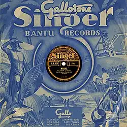 Solomon Linda, born in rural Natal,[5] was a migrant worker.[6] A beer hall singer,[7] he sang in a short-lived choir named the Evening Birds, which dissolved in the mid-1930s, and soon after founded a new group under the same name. The group, comprising himself as soprano, Gilbert Madondo as alto, Boy Sibiya as tenor, and Samuel Mlangeni, Gideon Mkhize, and Owen Sikhakhane as basses,[8] performed a cappella in the weekends. It quickly grew a following.[9] After moving to Johannesburg,[9] Linda became a packer at Eric Gallo's local record-pressing plant,[10][c] the first in sub-Saharan Africa and, at the time, the only one in black Africa.[12] It was not long before the firm's talent scout noticed the Evening Birds and invited them to the recording studio.[13] Back then, record firms eyed Zulu close-harmony vocal music owing to its appeal to migrant mineworkers.[14]