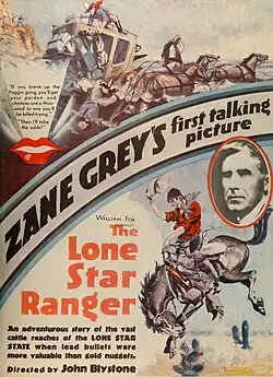 The Lone Star Ranger is a 1930 American pre-Code Western film directed by A.F. Erickson and written by Seton I. Miller and John Hunter Booth. The film stars George O'Brien, Sue Carol, Walter McGrail, Warren Hymer, Russell Simpson and Roy Stewart. It is based on the 1915 novel The Lone Star Ranger by Zane Grey. The film was released on January 5, 1930, by Fox Film Corporation.[1][2][3]