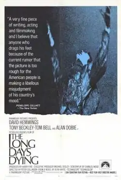 The Long Day's Dying is a 1968 British Techniscope war film directed by Peter Collinson, and starring David Hemmings, Tony Beckley and Tom Bell. It is based on the 1962 novel of the same name by Alan White.[2][3]