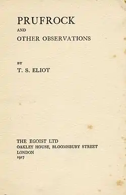 ![]() Cover page of The Egoist Ltd's publication of Prufrock and Other Observations (1917) | |