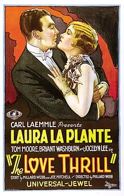 The Love Thrill is a 1927 American silent comedy film directed by Millard Webb and starring Laura La Plante and Tom Moore. It was produced and distributed by Universal Pictures.[1][2]
