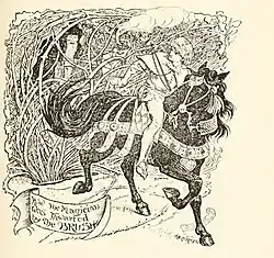 ![]() The youth and the horse leave the Magician behind the thicket of thorns. Illustration by Henry Justice Ford for The Grey Fairy Book (1900). | |