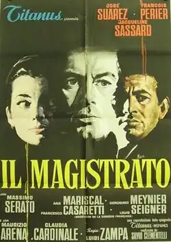 The Magistrate (Italian: Il magistrato) is a 1959 Italian-language drama film directed by Luigi Zampa. It was a co-production with Spain and France. Spaniard José Suárez stars in the film, which was shot in Madrid (exterior locations Plaza de España, Plaza Mayor, Parque del Oeste), with a French, Italian and Spanish cast. The name of the Italian city where the action takes place is never mentioned.