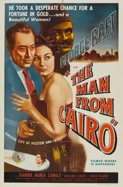 The Man from Cairo is a 1953 British/Italian/American international coproduction film noir starring George Raft. Released in Italy as Italian: Dramma nella Kasbah/Avventura ad Algeri, it also went under the alternative English titles Cairo Incident, Adventure in Algiers and Secrets of the Casbah.[2]
