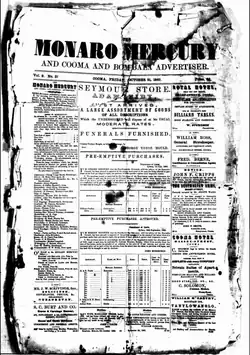 - ^ "Advertising". The Manaro Mercury, and Cooma and Bombala Advertiser. Vol. 3, no. 1. New South Wales, Australia. 3 April 1863. p. 1. Retrieved 13 June 2022 – via National Library of Australia.