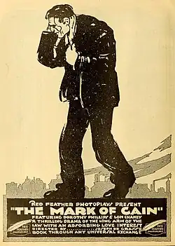 The Mark of Cain is a 1916 American silent lost film directed by Joe De Grasse, written by Stuart Paton, and starring Lon Chaney and Dorothy Phillips. The film's tagline was "A Thrilling Drama of the Long Arm of the Law With an Absorbing Love Interest". The film's working title was By Fate's Decree.[1]