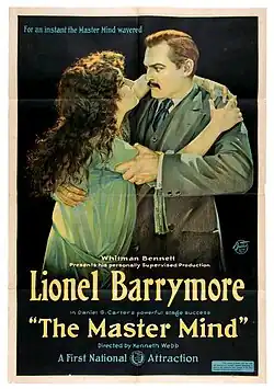 The Master Mind (also known as Sinners Three) is a lost[1] 1920 American silent crime drama film produced by Whitman Bennett and released by Associated First National Pictures, later just First National Pictures). Kenneth Webb directed and Lionel Barrymore stars. It is based on a 1913 play, The Master Mind, by playwright Daniel David Cohen also known as Daniel D. Carter.[2][3]