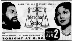 The Merchant of Venice is a 1961 Australian television adaptation of the play by William Shakespeare [2] that aired on 13 September 1961 in Sydney, and on 25 October 1961 in Melbourne.[3]