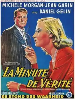 The Moment of Truth (French: La Minute de vérité, Italian: L'ora della verità) is a 1952 French-Italian drama film directed by Jean Delannoy and starring Michèle Morgan, Jean Gabin and Walter Chiari.[1] Delannoy co-wrote the screenplay with Henri Jeanson, Roland Laudenbach and Robert Thoeren. The music score is by Paul Misraki, Winfried Zillig and Georges Van Parys. It was shot at the Francoeur Studios in Paris. The film's sets were designed by the art director Serge Piménoff.