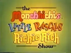 The Monchhichis/Little Rascals/Richie Rich Show is a 60-minute American Saturday morning animated package show co-produced by Hanna-Barbera Productions and King World Productions and broadcast on ABC from September 10, 1983, to September 1, 1984. The show contained the following three segments: Monchhichis, The Little Rascals and Richie Rich.