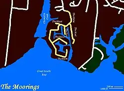 The Moorings is a guard-gated private community in the unincorporated East Islip hamlet of Suffolk County, New York and is not a census-designated place (CDP) within itself. It is situated on Long Island's Great South Bay.