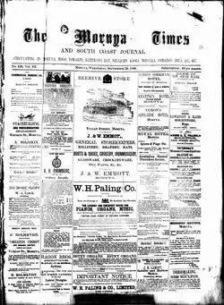 The Moruya Times and South Coast Journal was first published in March 1886 every Wednesday by Walter Bennett and later by William Boot.[1][2] The newspaper has changed names several times:
