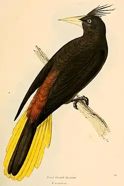 ![]() Frontispiece to volume 1 by Josiah Wood Whymper, entitled "Adventure with Curl-Crested Toucans". The image is misleading as Bates was not carrying a gun when he encountered the birds.[1] | |