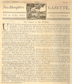 - University of New Hampshire history of early New Hampshire media beginning featuring the Gazette