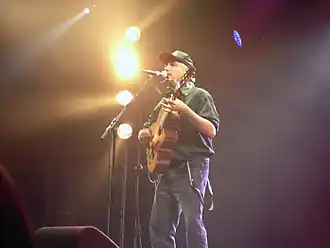 The Tell Us the Truth Tour was supported by unions, environmental and media reform groups including Common Cause, Free Press and A.F.L.-C.I.O. with the ultimate goal of "informing music fans, and exposing and challenging the failures of the major media outlets in the United States."[5] His Nightwatchman persona has been compared to Woody Guthrie,[2] Bruce Springsteen and Bob Dylan.[3] He initially had no plans to record,[6] but later recorded the song "No One Left" for Songs and Artists that Inspired Fahrenheit 9/11. At the Festival of Bonnaroo in 2007, the Nightwatchman performed Rage Against the Machine song "Guerrilla Radio" to protest George W. Bush.