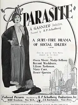 The Parasite is a 1925 American silent society drama film produced by B. P. Schulberg, and distributed by Al Lichtman and Preferred Pictures. The film was based on the 1913 novel The Parasite by Helen Reimensnyder Martin. It starred Owen Moore, Madge Bellamy, and Mary Carr.[1][2]