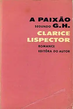 The Passion According to G.H. (A paixão segundo G.H.) is a mystical novel by Brazilian writer Clarice Lispector, published in 1964. The work takes the form of a monologue by a woman, identified only as G.H., telling of the crisis that ensued the previous day after she crushed a cockroach in the door of a wardrobe. Its canonical status was recognized in 1988 by its inclusion in the Arquivos Collection, the UNESCO series of critical editions of the greatest works of Latin American literature.[1] It has been translated into English twice, the first time in 1988 by Ronald W. Sousa,[2] and then by Idra Novey in 2012.[3]