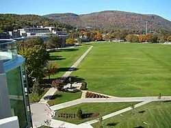 The Plain at West Point as viewed from the balcony of Jefferson Library, with Eisenhower statue and Diagonal Walk in foreground. | |