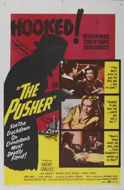 The Pusher is a 1960 American crime film directed and co-produced by Gene Milford. The screenplay—based on Ed McBain's novel of the same name, from his 87th Precinct series—was written by Harold Robbins. The film stars Kathy Carlyle, Robert Lansing, Felice Orlandi, Douglas Rodgers and Sloan Simpson. The film was produced in 1958, and released by United Artists in 1960.[1][2]