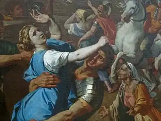 The horrendous, much-publicized rape of the Sabine women is the subject of two oil paintings by Nicolas Poussin.[a] The first version was painted in Rome about 1634 or 1635 and is now in the Metropolitan Museum of Art in New York City, catalogued as The Abduction of the Sabine Women.[1] The second, painted in 1637 or 1638, is in the Louvre in Paris, catalogued as L'enlèvement des Sabines.[3][b]