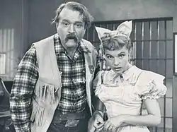 The sketches were usually built around one of Red's many characters, including "Deadeye", an incredibly inept sheriff in the Old West; "San Fernando Red", a shady real estate agent (named for the San Fernando Valley, which was still a largely rural area when the show began); "Cauliflower McPugg", a punchdrunk boxer; "George Appleby", a hen-pecked husband; "Junior, the Mean Widdle Kid" (whose trademark line was, "If l dood it, l get a whippin'.........l DOOD IT!"), "Clem Kadiddlehopper", a hick who was identified in at least one sketch as being from Cornpone County, Tennessee; and "Freddie the Freeloader". Freddie, regarded by many as Skelton's signature character, was a bum with a heart of gold, who was played by Skelton (and in one episode in 1961, by Ed Sullivan) in clown makeup reminiscent of Emmett Kelly but somehow not as sad. Freddie could be either a speaking character or totally pantomimed. While many of Skelton's other characters originated on his radio shows, Freddie was created for television in 1952.[17] Skelton's father, Joseph, who died two months before his youngest son, Richard, was born, was once a clown for the Hagenbeck-Wallace Circus.[18] Skelton, who had spent some time working for the same circus as a youth, copied his father's clown makeup for Freddie.[17] During the sketches, Skelton and the celebrity guest star would sometimes break character and make good-natured wisecracks at one another.