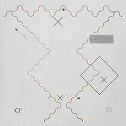 The River was written and produced from the fall of 2009 to the winter of 2010 by Michael Silver at his home and "on trains."[1] It was inspired by Fitzcarraldo (1982), a German adventure-drama film by Werner Herzog[2] that, in the words of writer Jonny Coleman, is about "academic (white) men who go out on culturally touristic crusades."[3] Coleman highlighted that these "academic (white) men" formed the presence of Imperialism in the world due to their crusades.[3] He analyzes that The River follows a character who is stranded in a rural, tribal land, where "benevolent polyrhythms share space with civilized instruments like synths and drum machines."[3] The vinyl cover of The River, designed by Kevin O’Neill, is a map of what led the title character of Herzog's film to achieve "madness and freedom."[2]