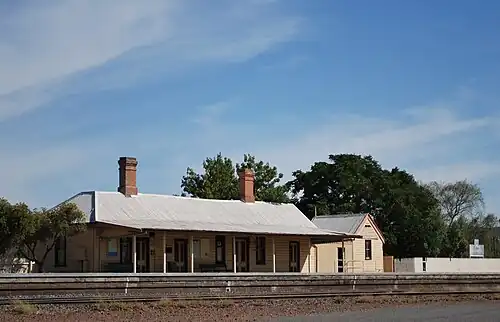 The Rock railway station is a heritage-listed railway station and antique shop located on the Main Southern line in The Rock in the Lockhart Shire local government area of New South Wales, Australia. The station is also known as The Rock Station and yard group. The property was added to the New South Wales State Heritage Register on 2 April 1999.[1]
