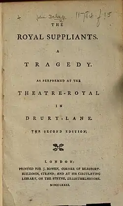 The Royal Suppliants is a 1781 tragedy by John Delap.[2]