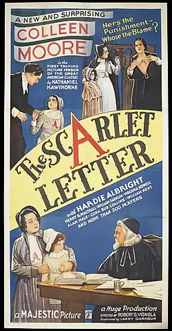 The first sound version of the story, starring former Jazz Age comedian Colleen Moore as the ill-fated Puritan adulteress, Hester Prynne, the film retained many of the silent film era players and studio sets from director Victor Seastrom’s 1926 silent adaptation starring Lillian Gish. Henry B. Walthall played Roger Chillingworth in both film versions.[1]