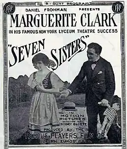 The Seven Sisters is a 1915 American silent romantic comedy directed by Sidney Olcott. Based on the 1911 ensemble play Seven Sisters by Edith Ellis Furness and Ferenc Herczeg, the film starred Madge Evans, Marguerite Clark, and Conway Tearle.[1][2] The film is now presumed lost.[3][4]