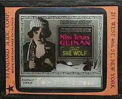The She Wolf is a 1919 American short silent Western film starring Texas Guinan and directed by Clifford Smith.