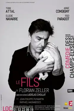 The Son (French: Le Fils) is a play by Florian Zeller. It premiered in February 2018 at the Comédie des Champs-Élysées, Paris, with Yvan Attal (Pierre), Anne Consigny (Anne), Élodie Navarre (Sofia) and Rod Paradot (Nicolas).[2] The play was produced again in September 2018, with Stéphane Freiss replacing Attal and Florence Darel replacing Consigny.[3] The play was translated into English by Christopher Hampton and premiered in London in February 2019.[4]