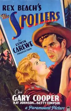 The Spoilers is a 1930 American Pre-Code Western film directed by Edwin Carewe and starring Gary Cooper, Kay Johnson, and Betty Compson. Set in Nome, Alaska during the 1898 Gold Rush, the film is about a gold prospector and a corrupt Alaska politician who fight for control over a gold mine. The film features a spectacular, climactic fistfight between Cooper and William "Stage" Boyd.[1]