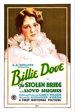 The Stolen Bride is a 1927 American silent drama film directed by Alexander Korda and starring Billie Dove, Lloyd Hughes, and Armand Kaliz. The film is a Hungarian-set romance across classes, where an aristocrat and a peasant fall in love.[1]