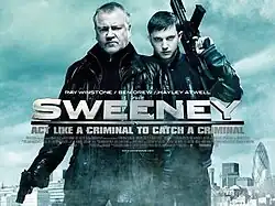 The Sweeney is a 2012 British action drama film, inspired by the 1970s British television police drama The Sweeney, but set in contemporary London. Written and directed by Nick Love, from a story by Love and John Hodge, it is based on the characters created by Ian Kennedy Martin. It stars Ray Winstone as Jack Regan, Plan B (credited as Ben Drew) as George Carter, and Damian Lewis as Frank Haskins, with Allen Leech and Hayley Atwell.