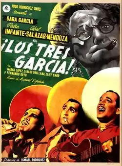 The Three Garcias (Spanish: Los tres García) is a 1947 Mexican comedy film by Ismael Rodríguez and starring Pedro Infante, Sara García, Abel Salazar and Marga López.[1][2] It was shot at the Tepeyac Studios in Mexico City. The film's sets were designed by the art director Carlos Toussaint. A sequel The Garcias Return was released a few months later the same year.