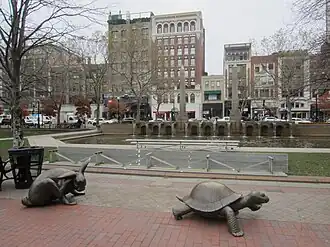 The Tortoise and the Hare is a 1994 bronze sculpture by Nancy Schön, installed in Boston's Copley Square, in the U.S. state of Massachusetts. The work references one of Aesop's Fables, The Tortoise and the Hare, and commemorates Boston Marathon participants.[1]