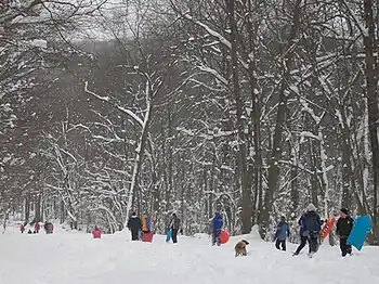 Tourne County Park is a county park in Morris County, New Jersey, United States. The park covers 547 acres (2.2 km²) in four different municipalities, Mountain Lakes, Denville, Boonton Township, and Parsippany. It includes bike trails, equestrian trails, hiking trails, picnic areas and play areas. Sledding and cross-country skiing are also allowed in the winter. Hiking and biking are the most common activity at this park with 1000 miles of gravel trails that climb a small mountain that has scenic views of the Rockaway Valley and east to New York City, which locals dubbed "The New York Overlook". The top of The Tourne also has a 9/11 memorial to honor the fallen.