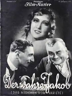 The True Jacob (German: Der wahre Jakob) is a 1931 German comedy film directed by Hans Steinhoff and starring Ralph Arthur Roberts, Anny Ahlers, and Felix Bressart.[1] It is based on a play by Franz Arnold and Ernst Bach which has been adapted into numerous films.