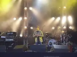 ![]() The Verve performing at Madison Square Garden in 2008. From left to right: Nick McCabe, Peter Salisbury, Richard Ashcroft and, out of sight, Simon Jones | |