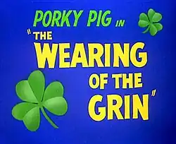 The Wearing of the Grin is a 1951 Warner Bros. Looney Tunes cartoon directed by Chuck Jones and written by Michael Maltese.[3] The short was released on July 14, 1951, and stars Porky Pig.[4] The title is a pun on the Irish song "The Wearing of the Green".