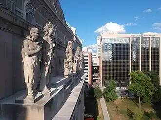 The Westward Journey, also listed as Indians, Reaper, Blacksmith, Pioneer Family,[1] is a set of outdoor sculptures made by Herman Carl Mueller in 1886–1887, located above the south portico of the Indiana Statehouse in Indianapolis, the capital of the U.S. state of Indiana.