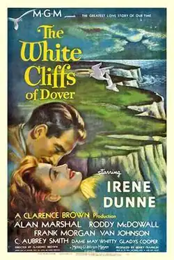 The White Cliffs of Dover is a 1944 American war drama film based on the verse novel The White Cliffs by Alice Duer Miller. It was made by Metro-Goldwyn-Mayer, directed by Clarence Brown, and produced by Clarence Brown and Sidney Franklin. The screenplay was by Claudine West, Jan Lustig and George Froeschel, with the credit for additional poetry by Robert Nathan. Nathan stated in an interview that he wrote the screenplay as his first work as a contracted writer for MGM but the studio credited Claudine West who died in 1943 as a tribute to her.[3]