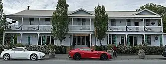 The building was originally constructed in 1905 as a railways administration block at the Hutt Workshops in Woburn, Lower Hutt.[1] A new site for the building was purchased in 2001 on Main Street, Greytown. The intention was to provide accommodation at the higher end of the market, and attract weekend visitors from Wellington.[2] The former railways building was cut into six sections for transport over the Remutaka Hill road.[1] During the transport of one of the sections in December 2002, the transport trailer was knocked off balance by a particularly strong gust of wind. Both lanes of the Remutaka Hill road were closed for more than four hours,[3] and a crane had to be brought in to rescue the load.[4]