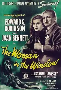 The Woman in the Window is a 1944 American film noir directed by Fritz Lang and starring Edward G. Robinson, Joan Bennett, Raymond Massey, and Dan Duryea. It tells the story of a middle-aged psychology professor[2] who kills in self-defense the lover of a young femme fatale he just met while his family is on vacation.[3]