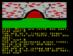 Another difference is that the player has only seven days, within the game's clock, to complete the game. Quests are also time-based and require that the player arrive at certain locations at specific hours to achieve the desired goal. And while game play remains the same, the backdrop is no longer an action adventure, but a political thriller that resembles the novel Nineteen Eighty-Four. Similar to what happened when Snowball was released, there was certain confusion about the main character's identity and the time when the story is set. The Level 9 Fact Sheet says: "...a couple of years later, Kim Kimberley has become a legend on Eden."[4] Another article stated: "Worm in Paradise is set 100 years later. You are now Kim Kimberley III..."[5] Furthermore, Pete Austin said, "Worm is set on Eden, about 50 years in the future" and "The player is not Kim - she becomes mayor and runs the place."[6] Notice that these sources termed the game by its original name, Worm in Paradise.