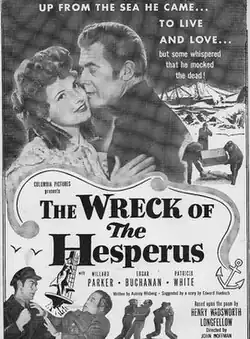The Wreck of the Hesperus is a 1948 American adventure film directed by John Hoffman and starring Willard Parker, Edgar Buchanan and Patricia Barry. It was produced by silent film actor Wallace MacDonald in association with Columbia Pictures, which also distributed the film.[1] It is preserved in the Library of Congress collection.[2]