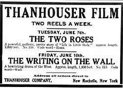 - ^ "Thanhouser Two a Week advertisement". Billboard. June 11, 1910. p. 47.