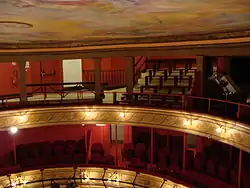 The gods (UK English), or sometimes paradise, is a theatrical term referring to the highest areas of a theatre such as the upper balconies. These are generally the cheapest seats; the moniker may have come from the ornately painted ceilings in older venues, often based on mythological themes.[1] Similarly those seated so high up look down upon both the performers and the occupants of more expensive seats, akin to the Greek pantheon looking down from Mount Olympus upon the lives of mortals.
